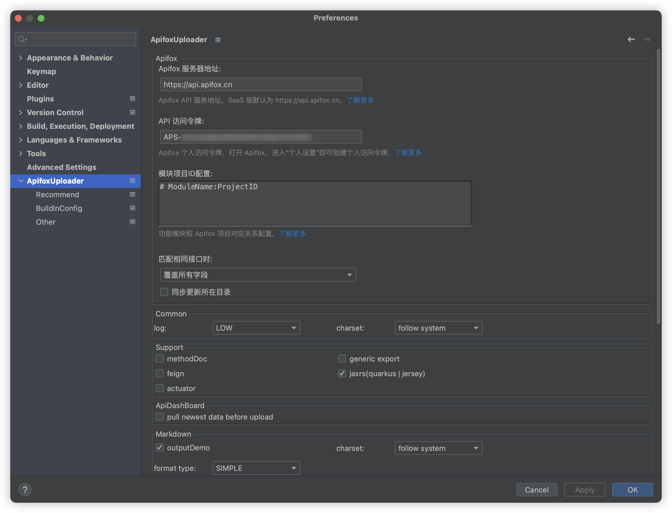 - 必要参数:一般来说, 当导出 API 的过程中需要提供某些参数, 插件将以弹框的方式提供输入,按要求填入即可。